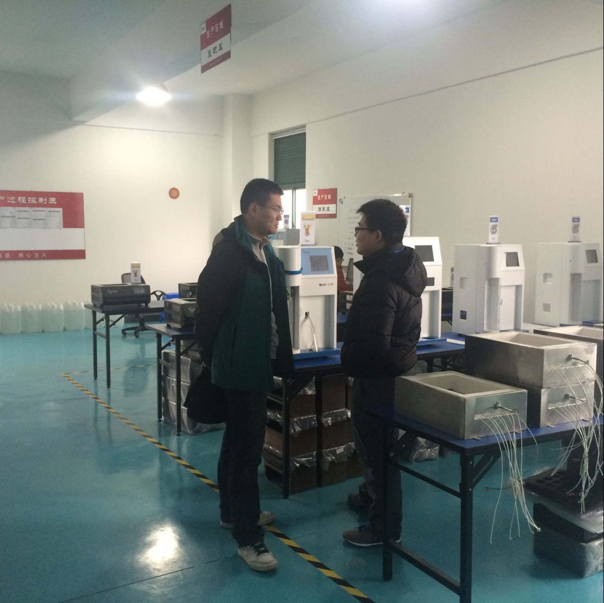 時老師參觀消解試驗                                老師參觀車間了解全自動調試過程        胡總與時老師合影留念